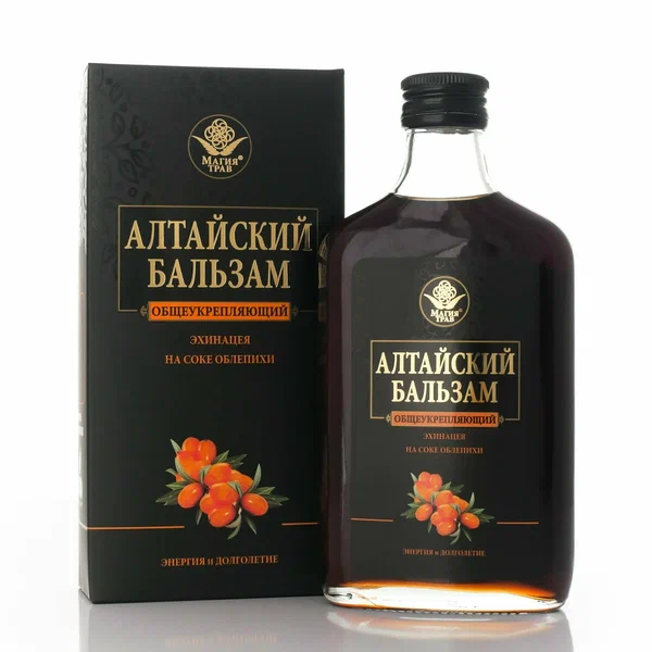 Сок облепихи, концентрированная вытяжка из травы эхинацеи, земляники лист, корневище и корни элеутерококка, экстракт из корневищ и корней солодки, лист бадана, плоды шиповника, боярышника, черемухи, сахарный сироп.