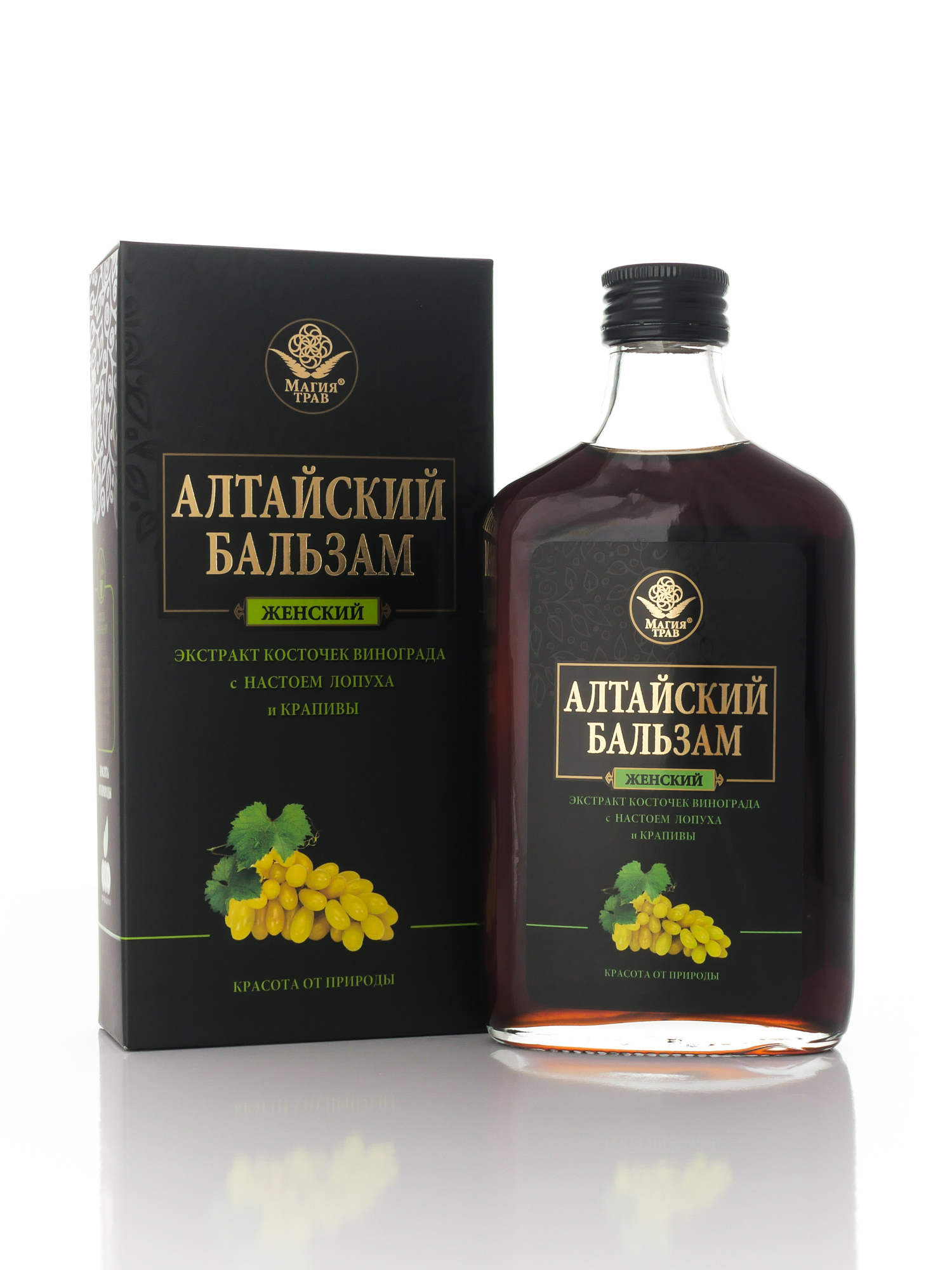 Экстракт косточек винограда, концентрированная вытяжка из корней лопуха, листа крапивы, травы боровой матки, цветков календулы, травы лабазника, душицы, листа бадана, мяты, плодов калины, сахарный сироп.