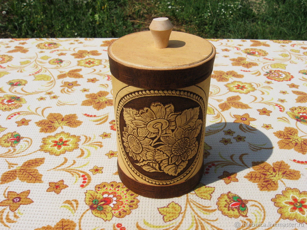 Берестяной туясок с рисунком «Подсолнухи». Цвет: светлый/темный
