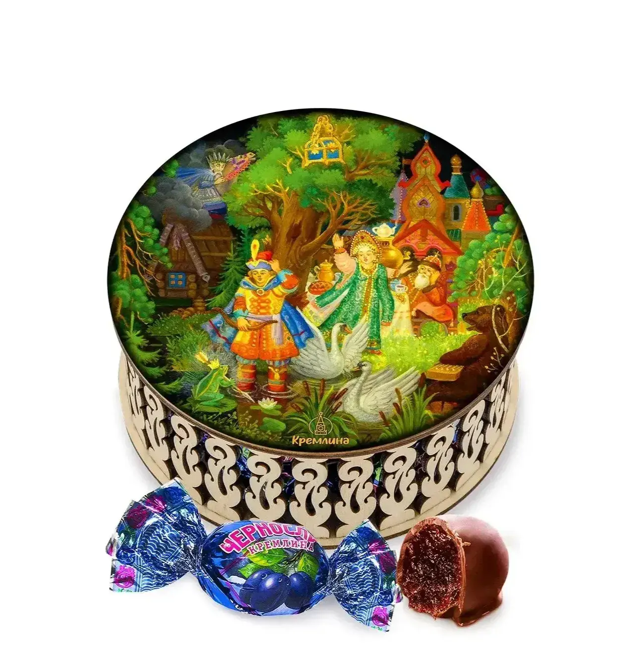 Шкатулка круглая по мотивам русско-народных сказок. Чернослив в шоколаде.