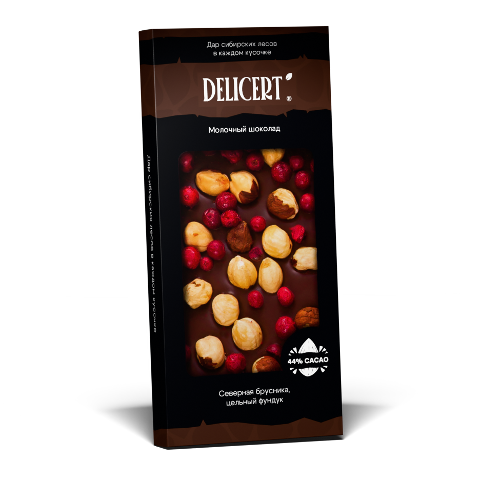 Северная брусника и цельный фундук с молочным шоколадом DELICERT. 75 гр.