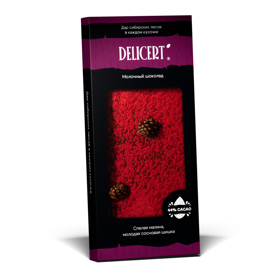 Шишка молодая сосновая и спелая малина в молочном шоколаде DELICERT. 75 гр.