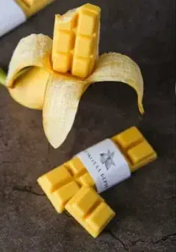какао масло, сухое обезжиренное молоко.сухое цельное молоко, сок банана, изомальтолигосахарид, смесь подсластителей (эритрит, сукролоза, стевиогликозид Е960) ароматизатор Ваниль, банан, соевый лиуетин, пищевой краситель.