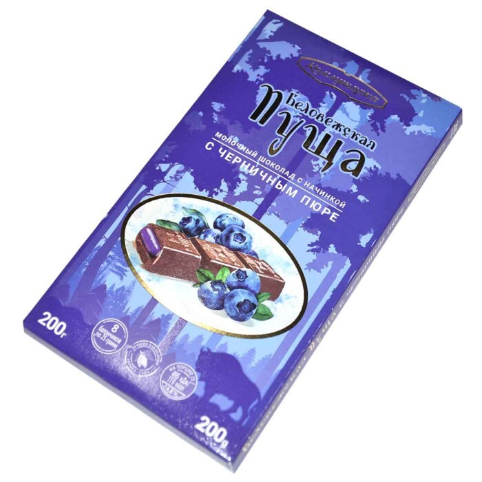 Шоколад "Беловежская пуща" - элитный десерт, который не оставит равнодушными ни взрослых, ни детей. Производитель фабрика Коммунарка - лидер на рынке кондитерских изделий не только в Беларуси. Она известна во всем мире своим непревзойденным высшим качеством продукции и верностью традициям. Молочный настоящий шоколад и пюре из черники - идеальный дуэт. Шоколадная сладость и кислая ягодная начинка - вы будете в восторге от этого сочетания. Сбалансированный натуральный состав, выверенная годами технология и только качественное белорусское сырье - вот ключ к восхитительному вкусу и доверию потребителей. В стильной дизайнерской коробке из плотного картона набор из 8 батончиков в индивидуальной упаковке по 25 г. Порционное вкусное лакомство станет отличным подарком для ваших близких и покорит даже самых искушенных гурманов.