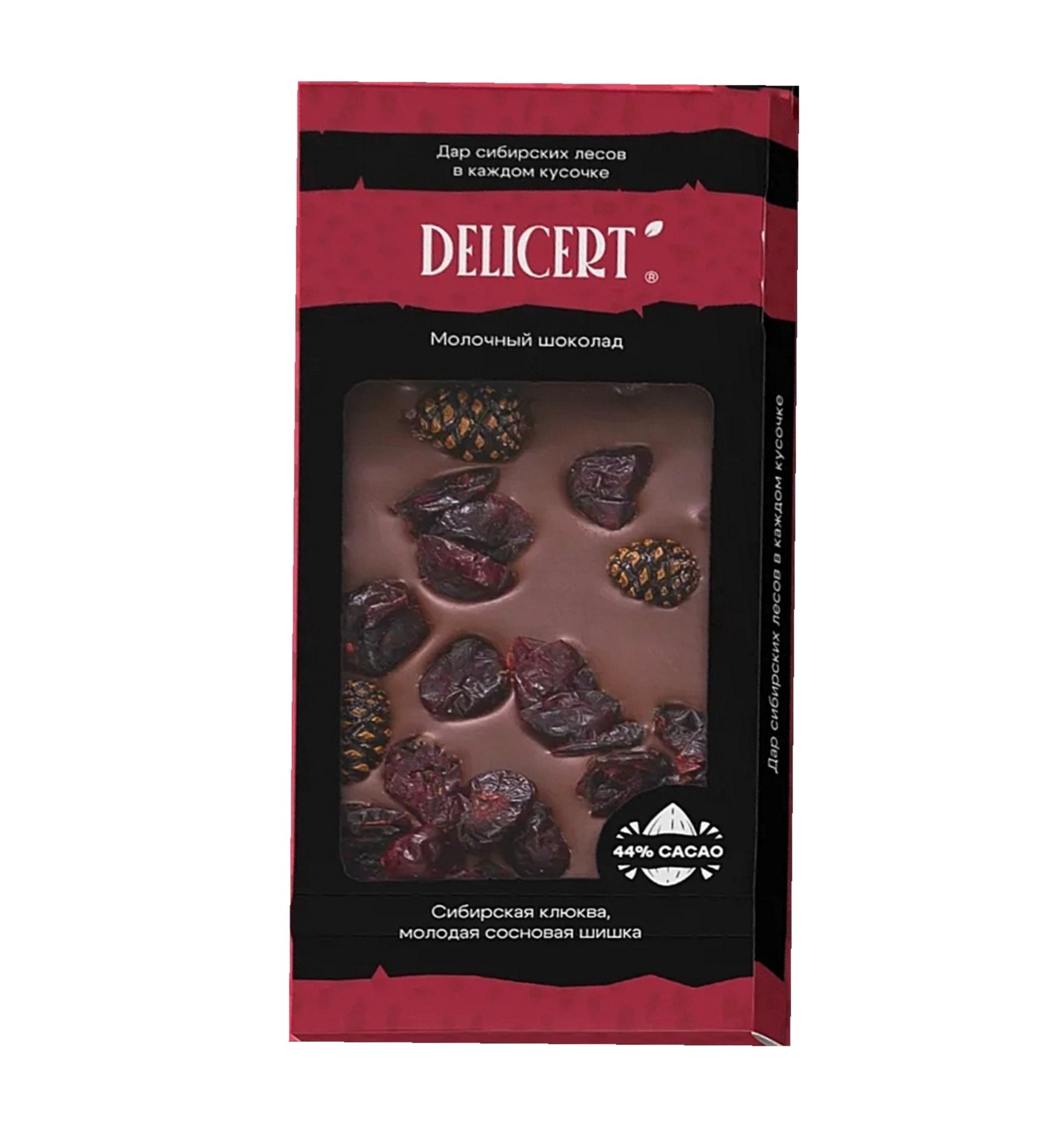 Шоколад молочный с сибирской клюквой ,молодой сосновой шишкой DELICERT. 75гр.