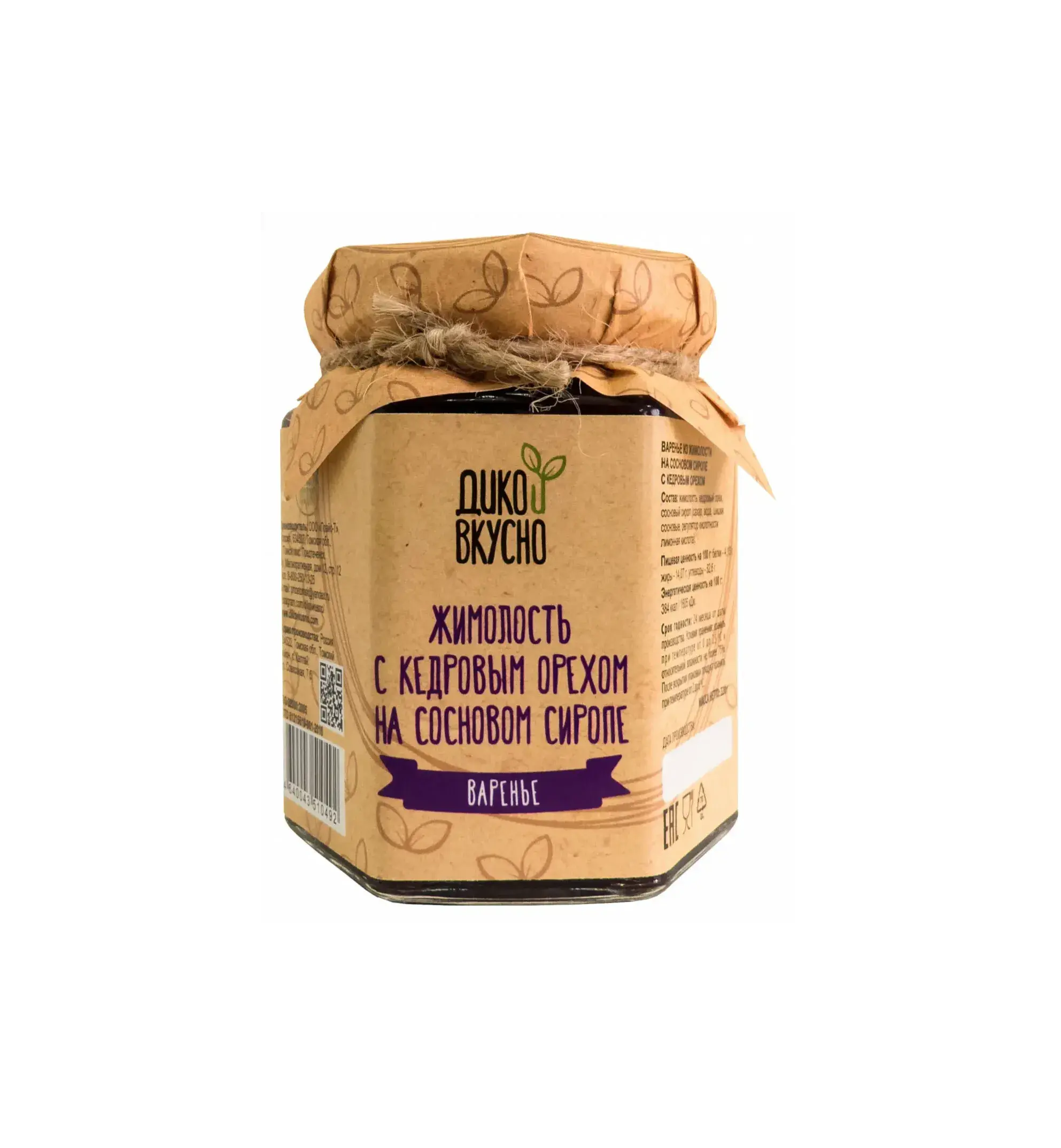 жимолость, кедровый орех, сосновый сироп (сахар, вода, шишки сосновые, регулятор кислотности лимонная кислота).