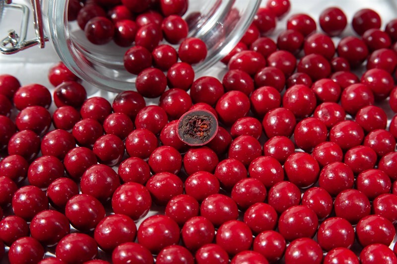 Темная шоколадная глазурь (сахар, эквивалент масла какао, какао- порошок, какао- тертое, эмульгаторы(соевый лецитин, Е476), ароматизатор «Ванилин»), белая шоколадная глазурь( сахар, эквивалент масла какао, молоко цельное сухое, молоко обезжиренное сухое, эмульгаторы (соевый лецитин, Е476), ароматизатор «Ванилин»), брусника вяленая, пищевой краситель натуральный- Кармин, натуральный ароматизатор- брусника, глянец- комплексная пищевая добавка «Капол».